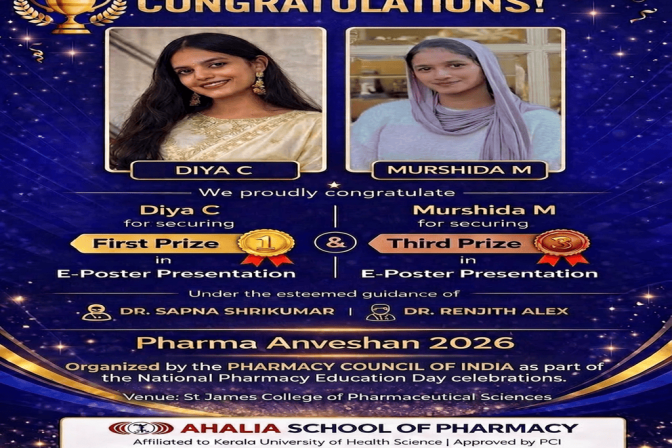 Ahalia School of Pharmacy is a distinguished and well renowned entity working under the portal of Ahalia International Foundation, Palakkad. Ahalia Educational campus is situated in a serene environment in the valley of Western Ghats, Kerala.
