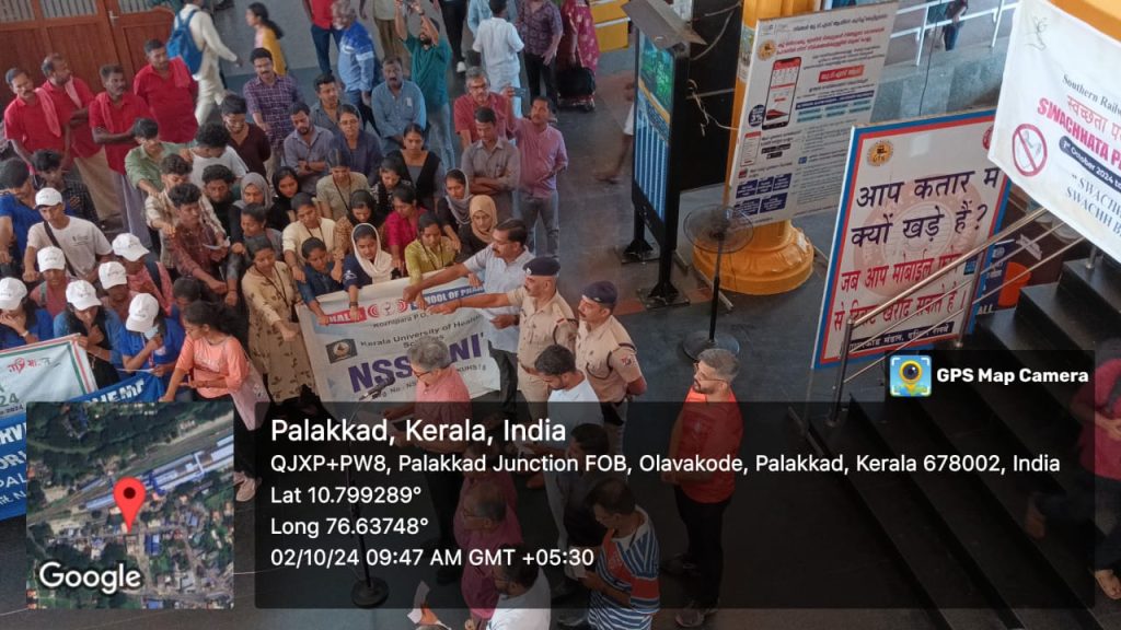 In a move to extend support to Southern Railway, Palakkad Division, the volunteers of the unit took part in the Swachichatha Campaign by cleaning the premises of Palakkad Junction railway station on the occasion of Gandhi Jayanthi, October 2,2024.