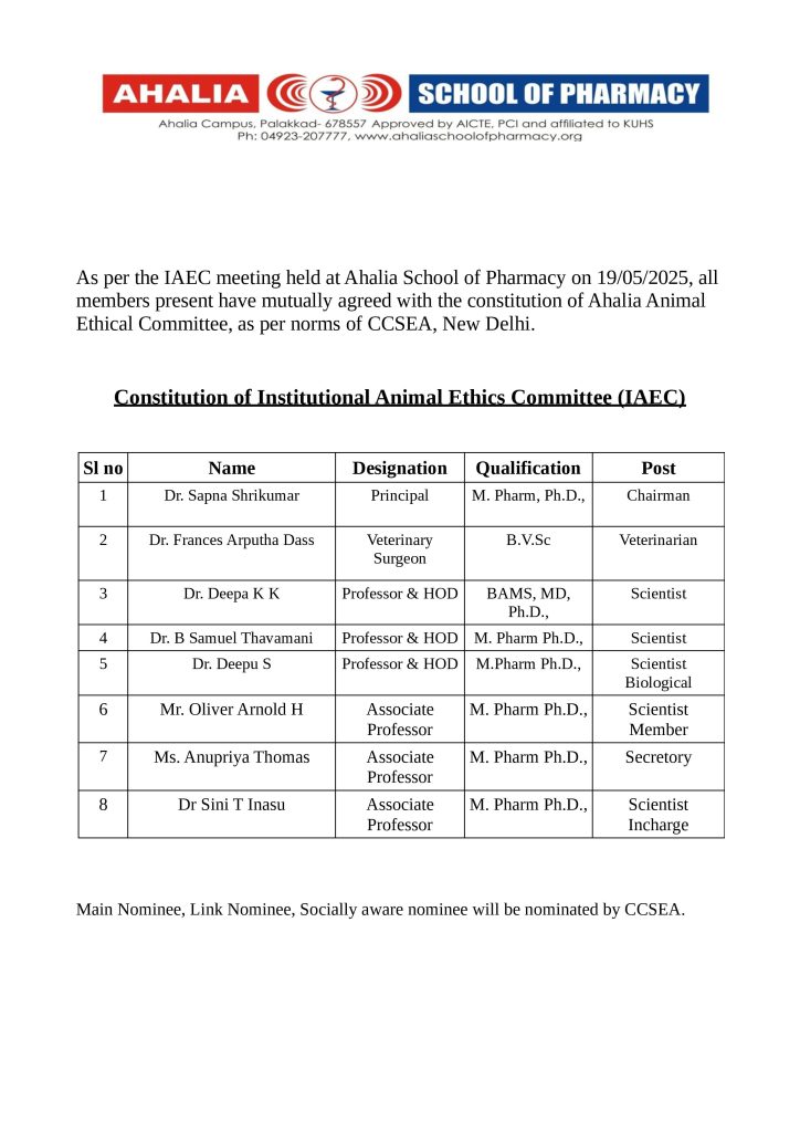 Institutional Animal Ethics Committee (IAEC) Constituted
