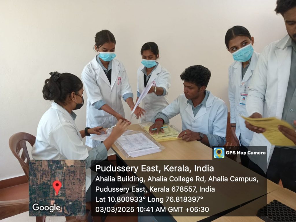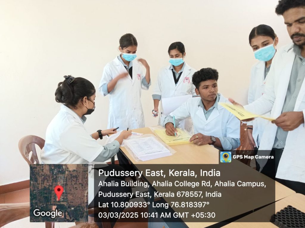 A medical check up ( admission package) was organized at Ahalia School of Pharmacy on 3rd March 2025 for the first-semester B. Pharm students. The event aimed to promote health awareness, provide medical consultations, and offer basic health check-ups to the students. The camp featured a team of healthcare professionals who conducted general health assessments, including blood sugar tests, and lipid profile tests.